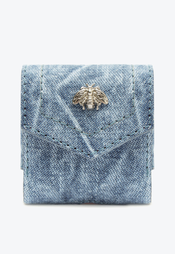 Com construção trendy em jeans e charmosa aplicação da abelha dourada, símbolo da nossa família Believe, essa mini carteira conta com prático fechamento de ímã. Perfeita para levar com você sempre!