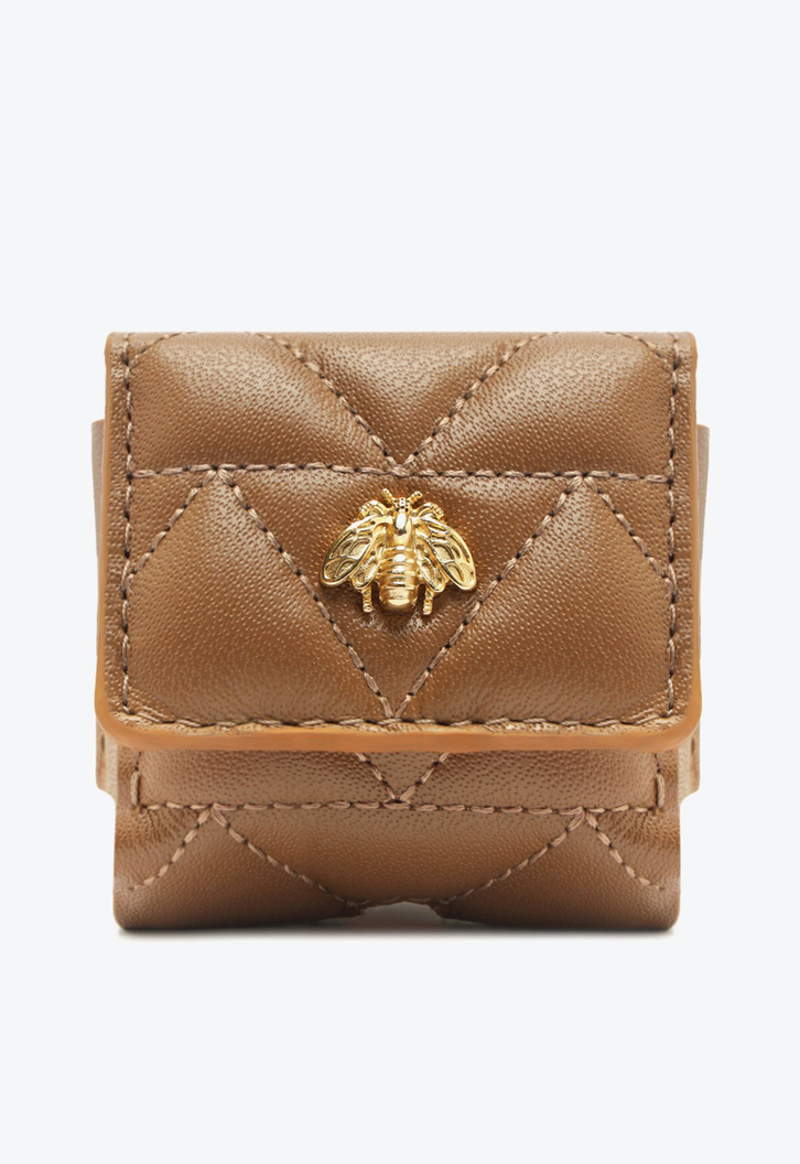Com elegante construção em couro matelassê e charmosa aplicação da abelha dourada, símbolo da nossa família Believe, essa mini carteira marrom conta com prático fechamento de ímã. Perfeita para levar com você sempre!