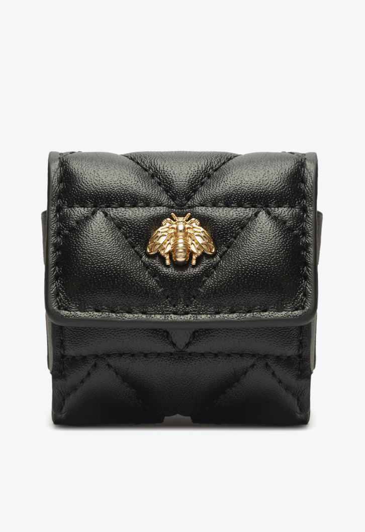 Com elegante construção em couro matelassê e charmosa aplicação da abelha dourada, símbolo da nossa família Believe, essa mini carteira preta conta com prático fechamento de ímã. Perfeita para levar com você sempre!