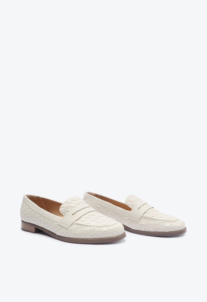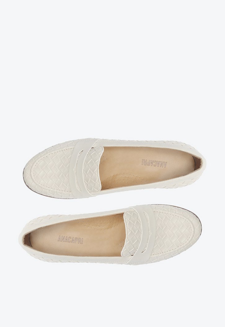 Mocassim feminino Textura Tressê Branco. De solado emborrachado com leve saltinho e bico arredondado, o modelo traz recorte lateral imponente e aplicação de tira com recorte vazado na gáspea. Com detalhe em acabamento tressê por toda a peça, traz palmilha acolchoada nude, com assinatura Anacapri. Fechado, o modelo exibe o peito do pé.