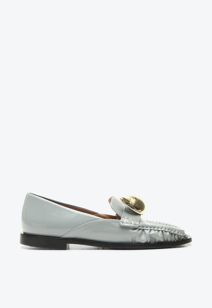 Mocassim em verniz cinza com detalhe metalizado. Com toque moderno e visual marcante, esse modelo ressalta o charme do couro drapeado combinado a um adorno metalizado de acabamento orgânico. Um modelo cheio de estilo, perfeito para adicionar autenticidade a produções casuais ou compor looks mais elegantes com leveza e praticidade.