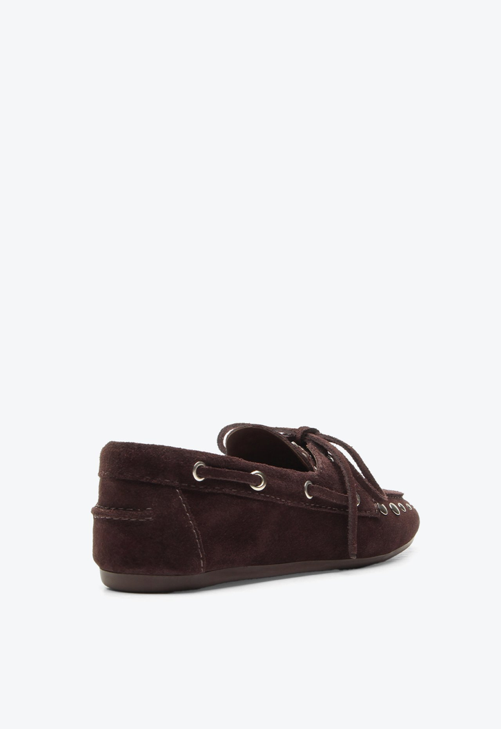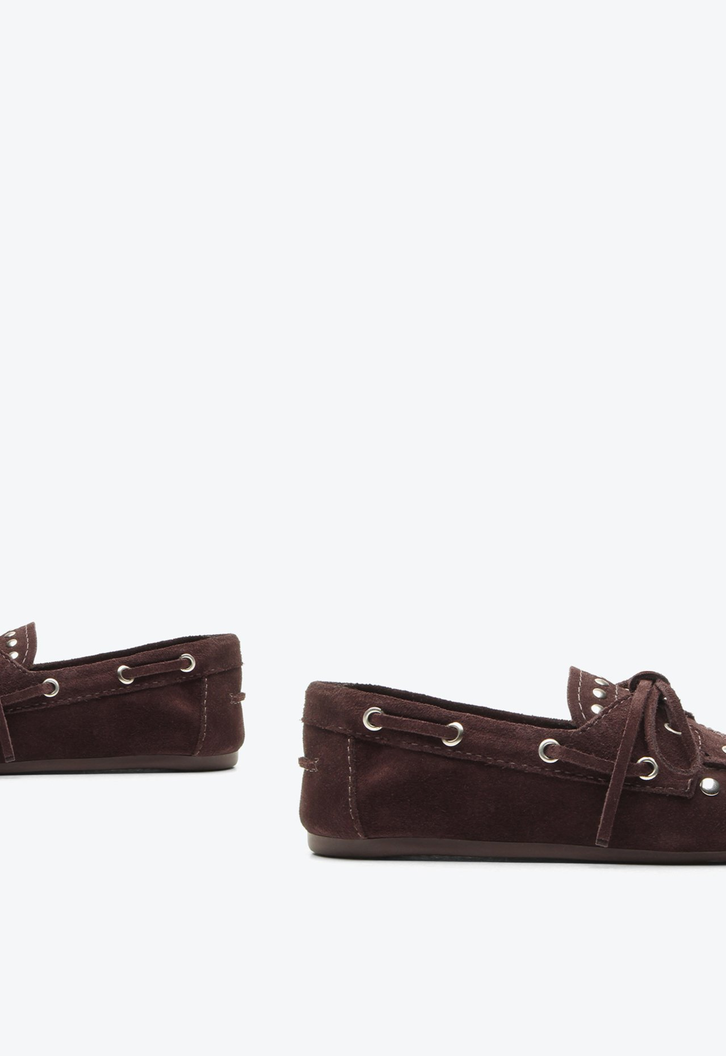 Mocassim em camurça marrom. A escolha ideal para quem busca seguir a tendência Gypsy Soul com estilo e autenticidade. Inspirado no estilo boho, esse modelo destaca detalhes rústico-chic que garantem sofisticação e personalidade ao visual. Perfeito para quem deseja criar looks descomplicados e cheios de atitude.