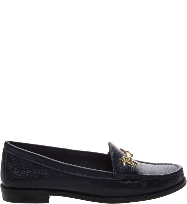Mocassin em couro na cor azul marinho, com detalhe de metal na parte frontal. O mocassim pode ser usado em praticamente qualquer ocasião. Não pense que sua combinação limita-se a look mais formais. Vale usar com regata ou camiseta para o dia a dia ou com camisa para um look mais profissional.