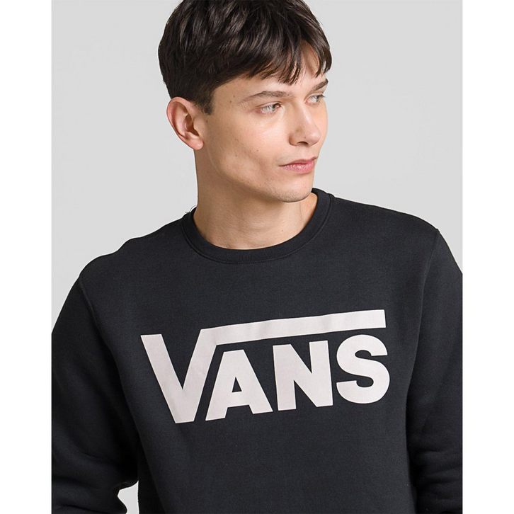 Nada melhor que um clássico original Vans para te aquecer com estilo nas temperaturas mais amenas. Honrando as tradições, o Moletom Vans Classic Crew Ll Black White masculino traz a herança “Off The Wall” para compor um visual despojado e esportivo, com total conforto. O moletom é confeccionado em poliéster e algodão, apresenta gola, punhos e barra canelados. Na cor preta, traz estampa frontal com assinatura Vans em “Drop V” centralizada na altura do peito, em silk à base d’água e aplicação de etiqueta tecida Vans na lateral. O caimento do moletom é clássico, trazendo leveza e conforto ao vestir. O modelo tem 1,82 e veste tamanho M.