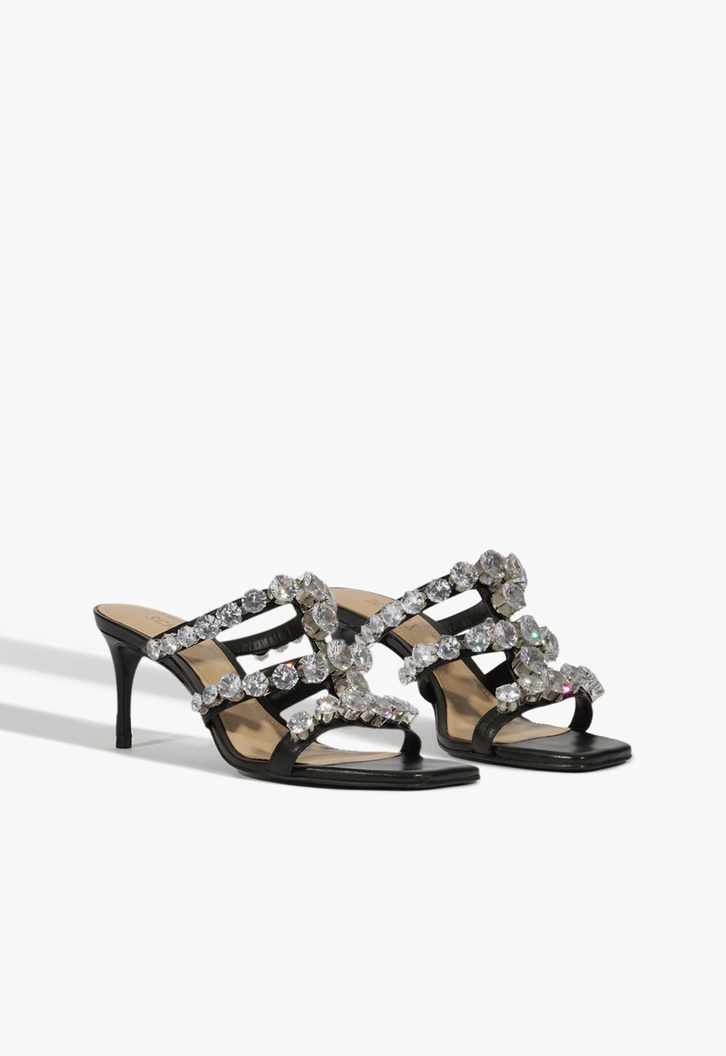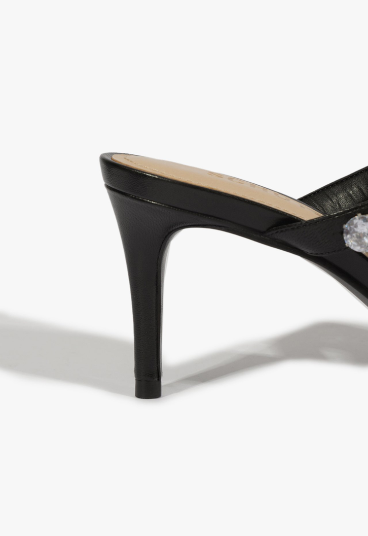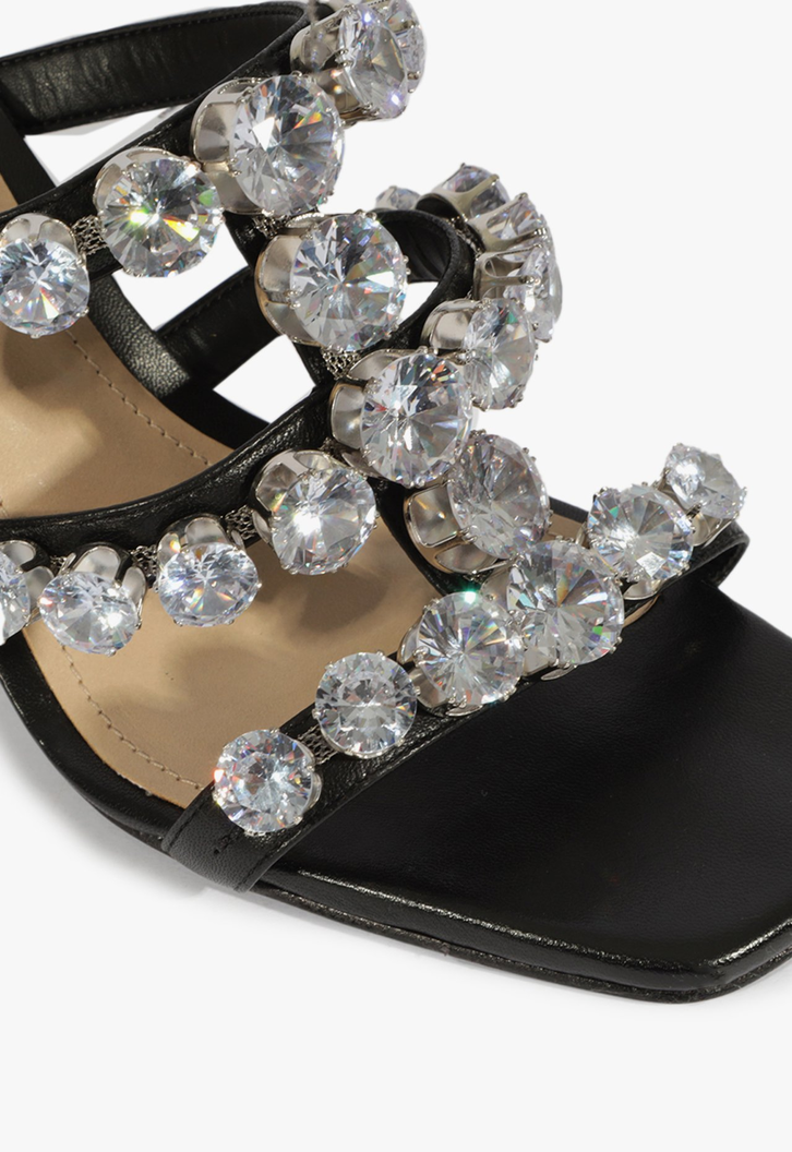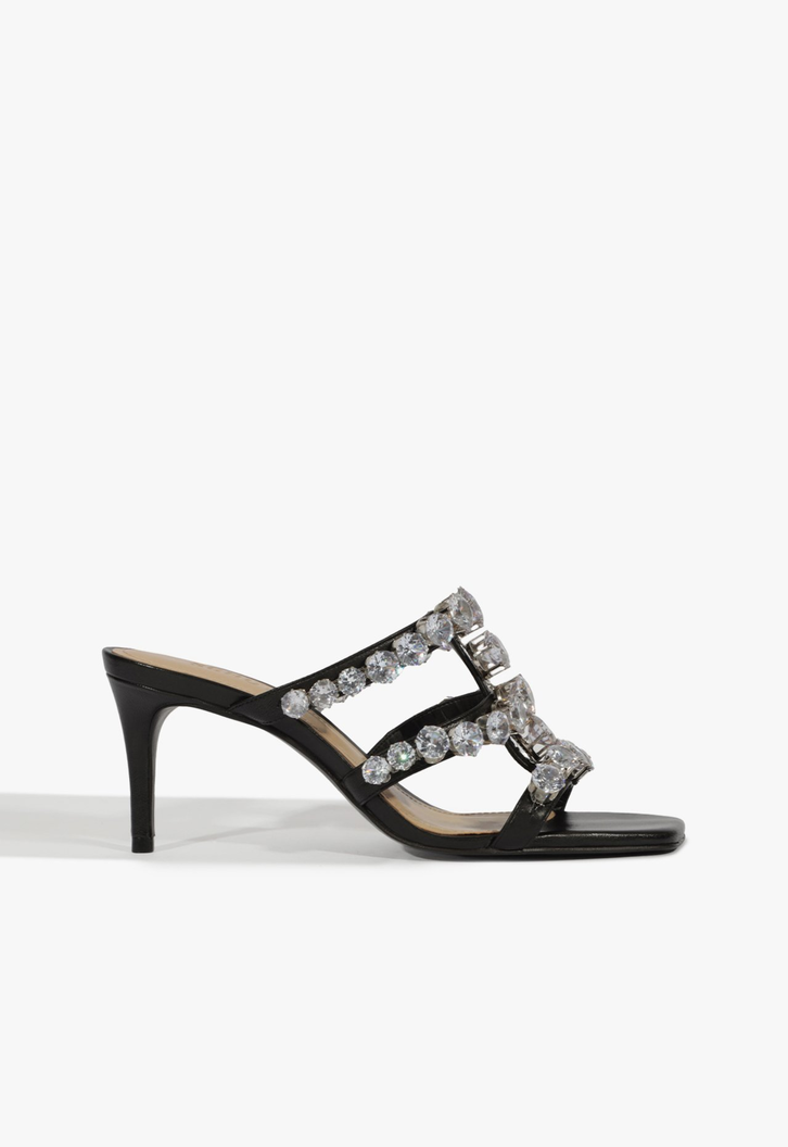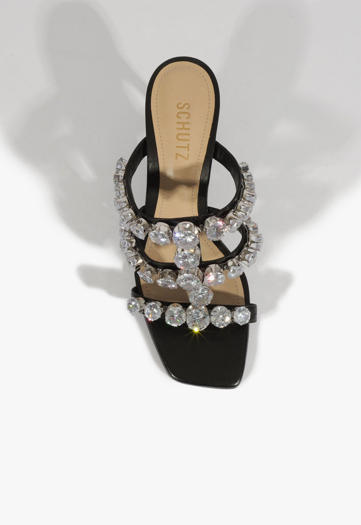 Eleve seu estilo com essa sandália mule de prata com strass. Este modelo é a combinação perfeita de elegância e conforto, ideal para qualquer ocasião.