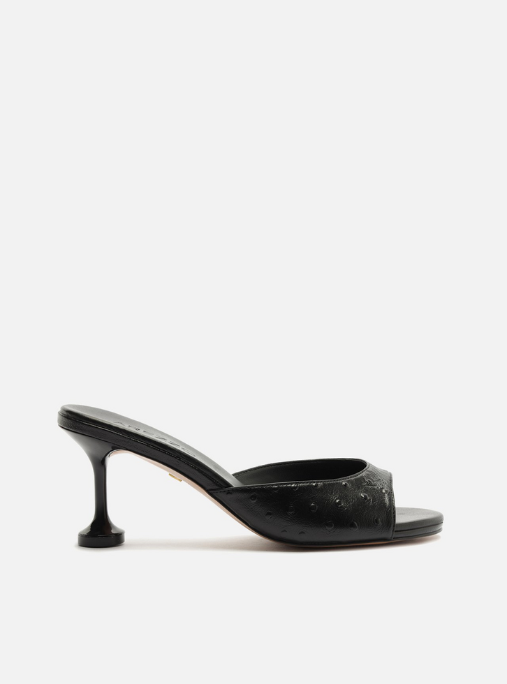 Mule Preta Textura Salto Médio Taça Tira