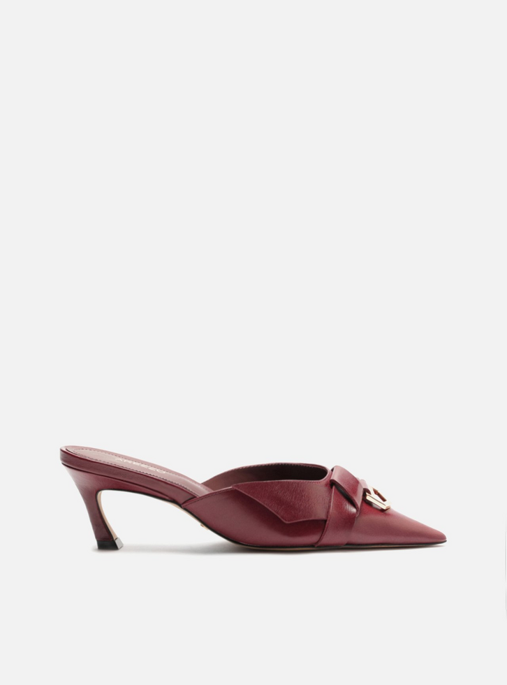Mule Vermelho Couro Bico Fino Salto Baixo