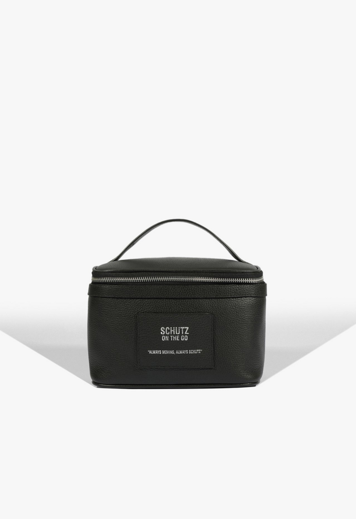 Parte da nossa linha Travel, essa nécessaire feminina preta conta com design elegante e prático com alça superior e fechamento de zíper. Feita em couro, traz assinatura exclusiva Schutz que destaca o modelo. Aposte!