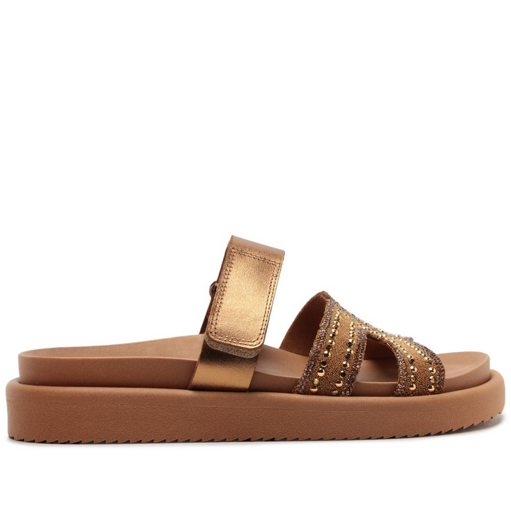 Porque Apostar: Hit certeiro da temporada, a papete Anacapri vem repaginada para o período de festas: ela ganha um toque glam! Minimalista, com design de recortes e aplicação de strass e tira com fecho em velcro, ela é simplesmente perfeita para um calce comfy e elegante. Casual chic da estação, ela dá o match perfeito para celebrar momentos especiais.
