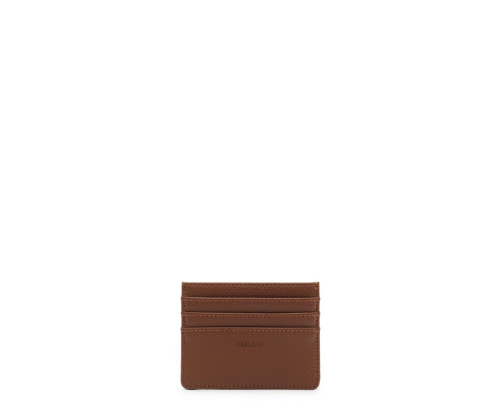 Porta-cartão pequeno com divisórias, na cor marrom. De material similar ao couro com efeito texturizado, o acessório vem para a temporada no shape quadrado e no tamanho P. Possui acabamento em costura ornamental no contorno da peça e vem com três abas para acomodar cartões, na parte frontal e nas costas - com detalhe para acomodar documentos no centro. Traz assinatura Anacapri em relevo, centralizada na capa frontal.