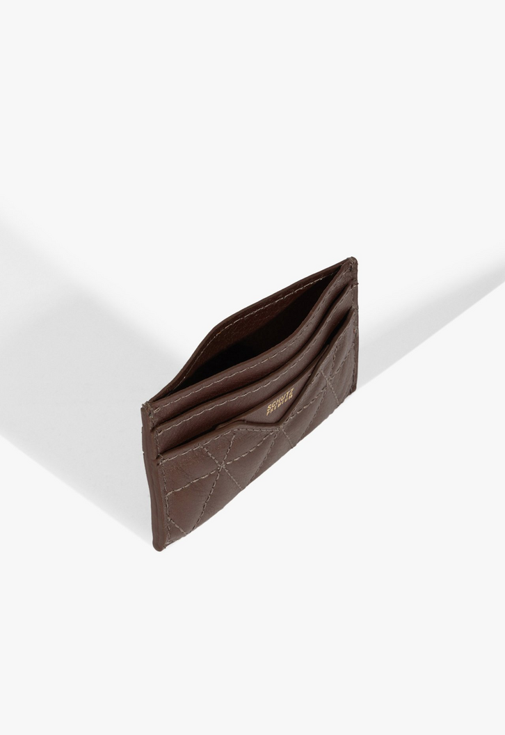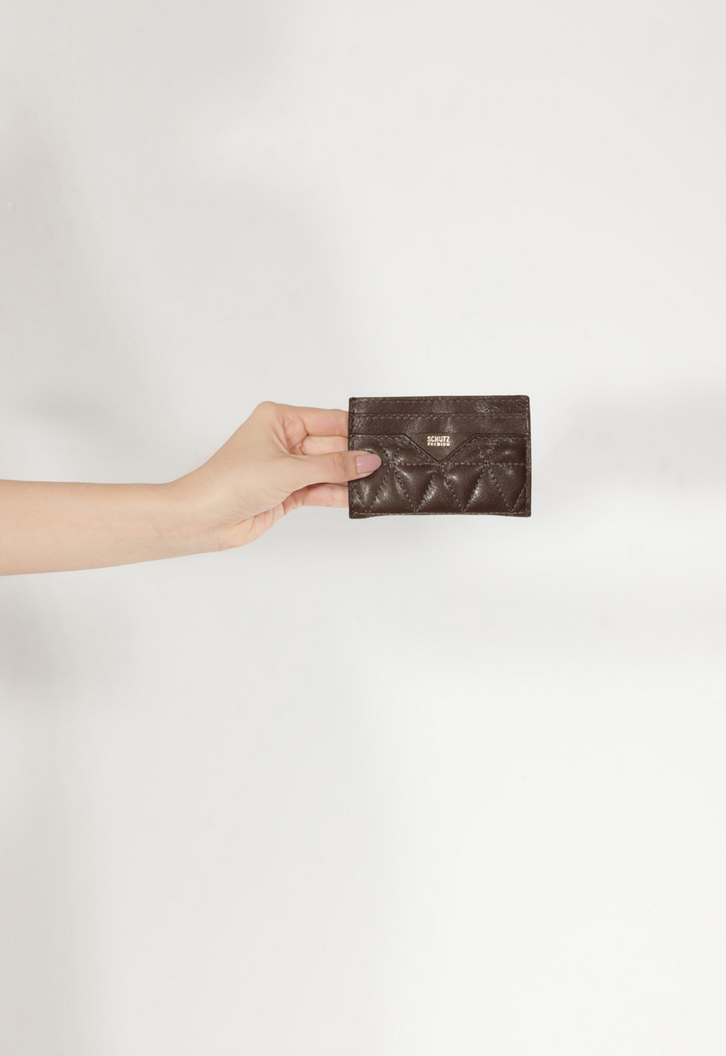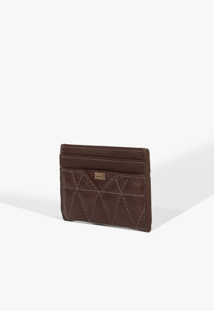 Esse porta-cartões em couro, com acabamento de costuras matelassê em formato triangular, traz um toque de sofisticação para o seu bolso. Compacto e elegante, é uma escolha certeira para quem não abre mão de estilo e organização.