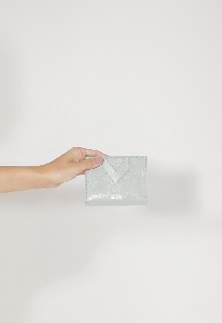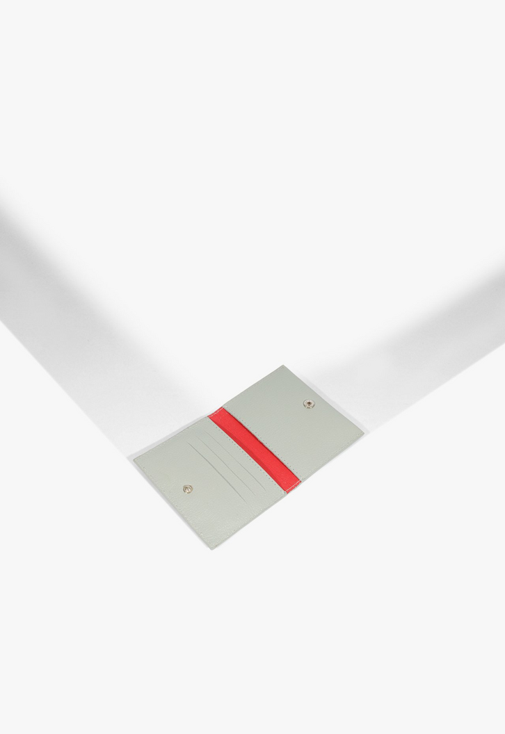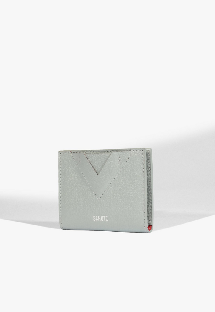 Com fechamento por botões de pressão e práticos compartimentos para levar cartões, dinheiro e documentos, este porta-cartões azul-claro em couro supermacio se destaca por seu design compacto e sofisticado, ideal para te acompanhar onde for. Aposte!