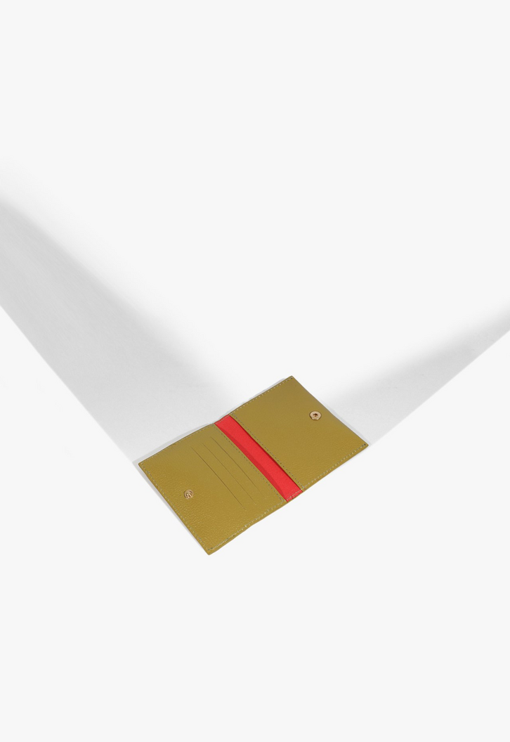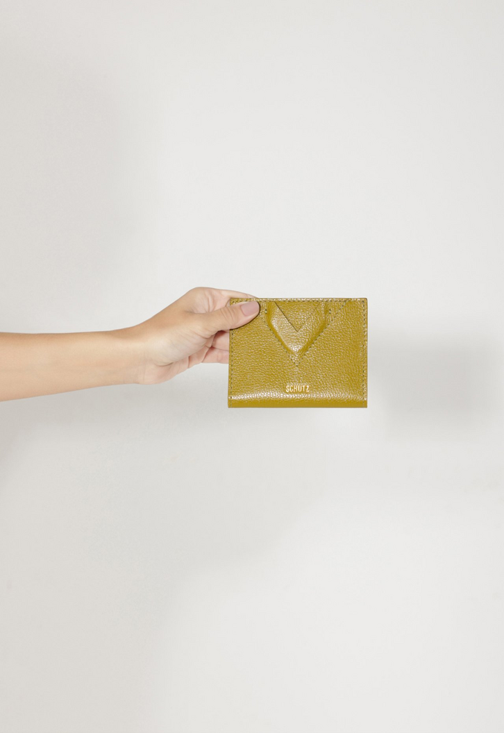 Com fechamento por botões de pressão e práticos compartimentos para levar cartões, dinheiro e documentos, este porta-cartões verde-pistache em couro supermacio se destaca por seu design compacto e sofisticado, ideal para te acompanhar onde for. Aposte!