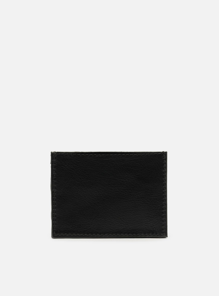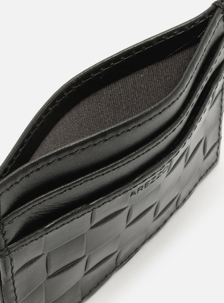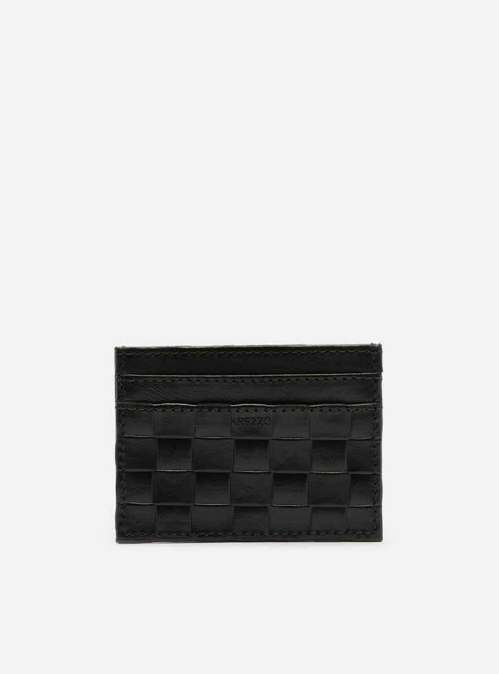 Porta-cartões feminino pequeno preto de couro em tressê. O acessório tem formato quadrado, contorno em pesponto, além de inscrição do nome da marca na capa. Com espaço para cartões interno e na capa.