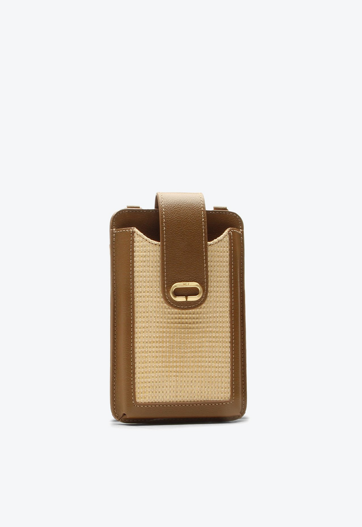 Porta celular Beatrice em napa com detalhes tramado. Um acessório prático e elegante, ideal para acompanhar você em todos os momentos. O mix de materiais adiciona textura e sofisticação ao visual, e o design funcional permite carregar o celular com estilo. Versátil e moderno, é perfeito para complementar looks do dia a dia ou dar um toque de charme às composições de verão.