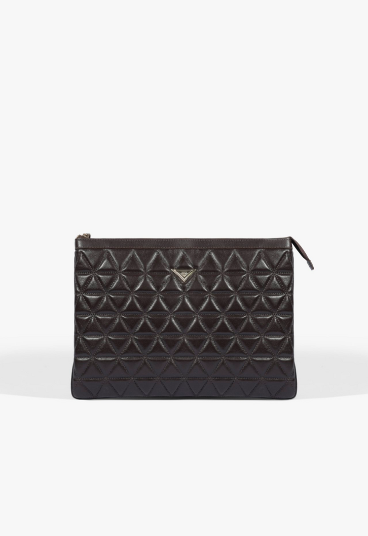 Pensando em deixar até mesmo seus itens funcionais mais interessantes, essa capa para notebook marrom traz o visual elegante do couro matelassê arrematado pelo nosso sofisticado Triangle dourado. Tem fechamento de zíper e construção segura para levar seu computador com você com muito estilo!