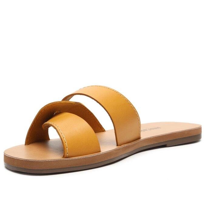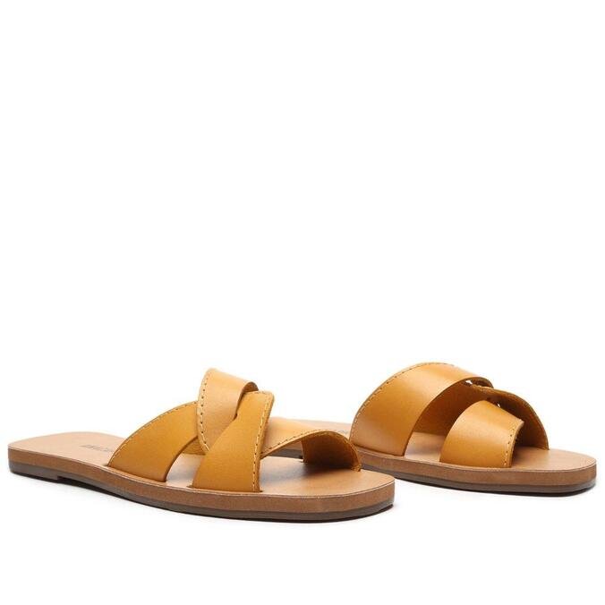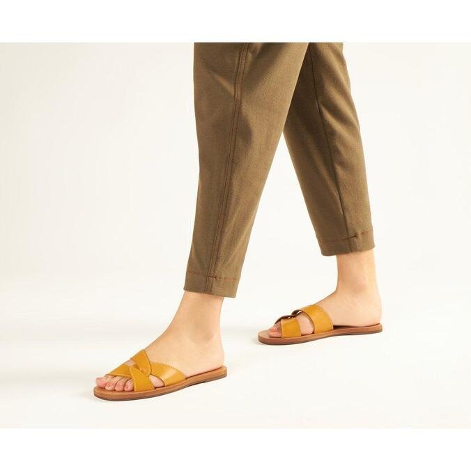 Sandália rasteira de couro amarela. O modelo tem bico redondo e palmilha bege com o nome da marca. Traz duas tiras largas entrelaçadas sobre os dedos. Aberta, deixa todo o pé à mostra.Porque ApostarA rasteira slide é mega confortável e prática, perfeita para dar aquele rolê ou curtir o conforto de casa. Use com shorts ou vestido soltinho e aposte ainda em acessórios divertidos. É aquele modelo que traz um gostinho de praia, não é mesmo? Para ter uma de cada cor e arrasar!
