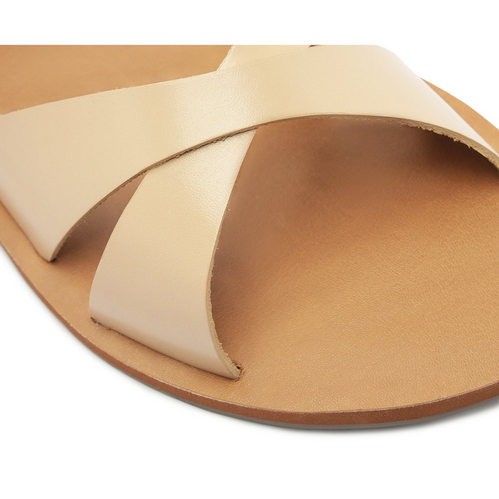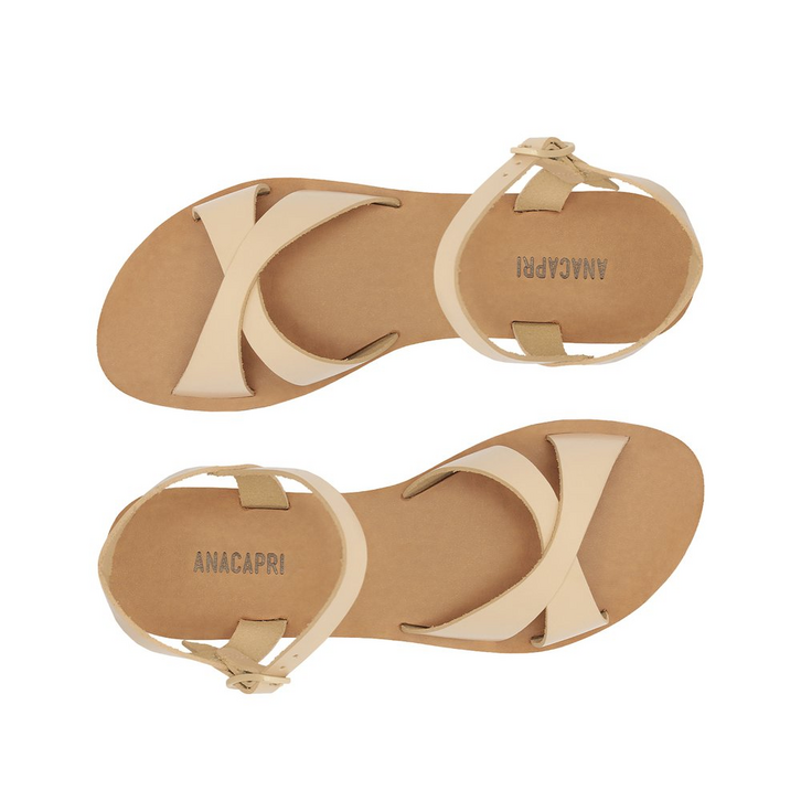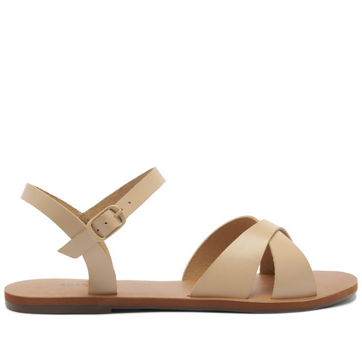 Rasteira Gaia Couro Bege Apresenta cabedal com duas tiras largas cruzadas sobre o peito de pé. O modelo possui biqueira redonda e soladinho flat anatômico, com assinatura Anacapri. Com tira que contorna o calcanhar, o fechamento é por fivela regulável no tornozelo. Leve e confortável, traz frescor no calce, exibe dedos e laterais. Dica de amiga: para esse modelo, recomendamos a compra de um tamanho maior do que a sua numerção convencional.