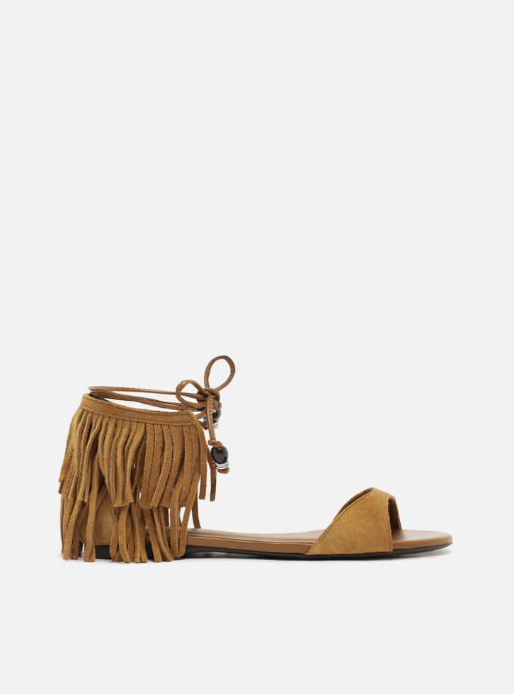 Rasteira Marrom Camurça Franjas