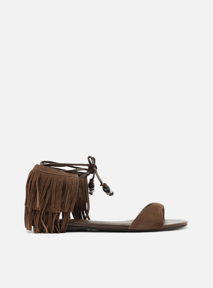 Rasteira Marrom Camurça Franjas