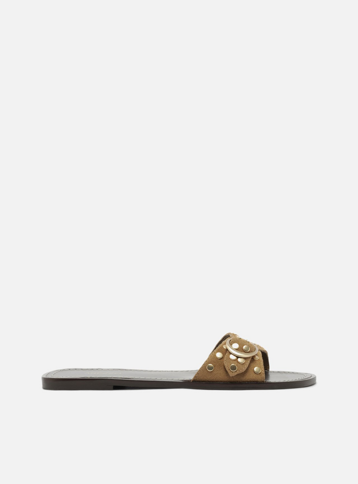 Rasteira Marrom Couro Fivela