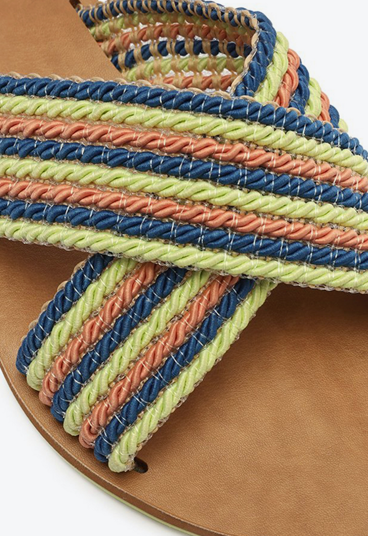 Rasteira Multicolorida Navy Palha Tiras Cruzadas