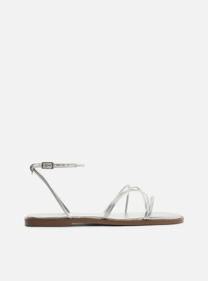 Rasteira Prata Bico Quadrado Tiras Finas Fivela
