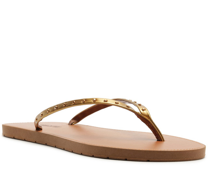 Porque Apostar: Minimalista e super charmosa, a rasteira de tiras finas com pedrarias é perfeita para elevar até as produções mais básicas. O brilho das aplicações se mistura ao tom metalizado bronze, garantindo um toque sofisticado e moderno. Leve, confortável e fácil de calçar, é a aposta certa para desfilar no estilo fresh e delicado nos dias quentes da estação.