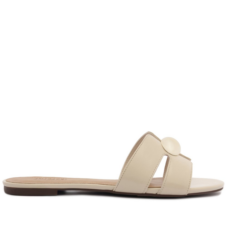 Rasteira de tiras em H, com detalhe de recortes e pedraria, na cor branca. A rasteirinha, que lembra um slider, apresenta cabedal em tiras geométricas vazadas: duas tiras largas em material similar ao couro, com design de recortes em H e aplicação de maxi pedraria imponente sobre a gáspea. Aberta, de biqueira arredondada, traz palmilha comfy no mesmo tom da rasteirinha, com assinatura Anacapri. O modelo deixa os dedos e calcanhar totalmente à mostra.