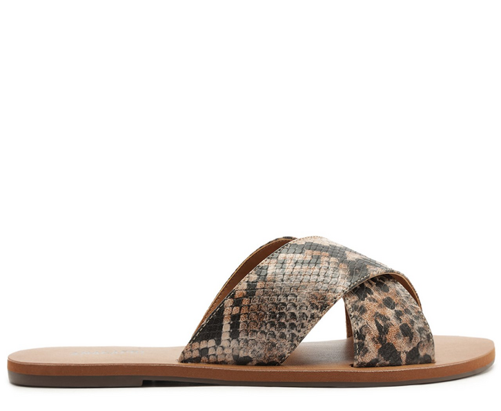 Porque Apostar: A clássica rasteira de tiras cruzadas agora em uma versão comfy e altamente fashionista, com o detalhe estampado em animal print. O modelinho aberto é o calce ideal para os dias mais quentes, arrematando a produção na temporada de Verão’26 Anacapri. Dias leves e cheios de frescor. Pool party e beach vibes, estamos prontas!