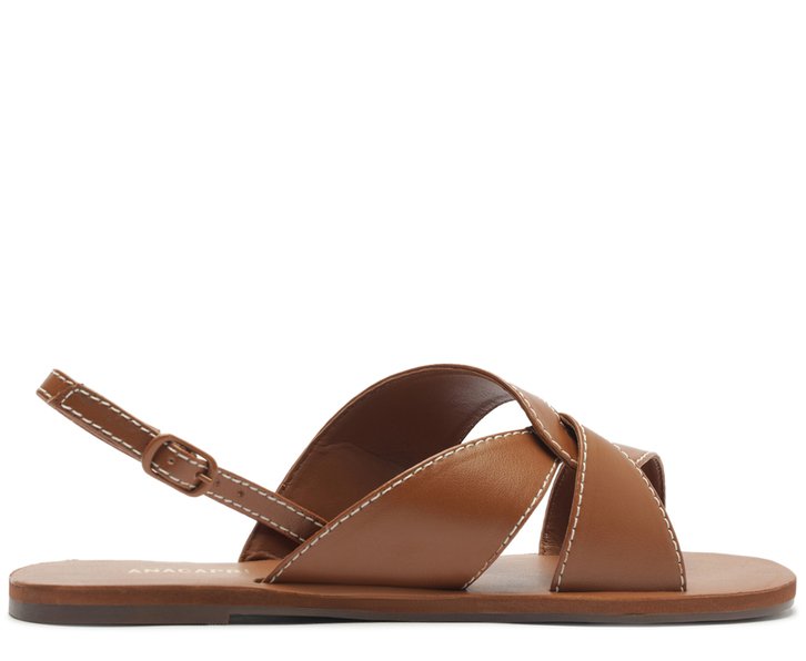 Rasteira de tiras largas e transpassadas, na cor marrom. O modelo de solado rasteiro emborrachado com leve saltinho traseiro, apresenta cabedal imponente com duas tiras largas transpassadas e acabamento em pesponto delicado nos contornos - com design entrelaçado na lateral, sobre os dedos e peito de pé. Com fecho regulável em fivela lateral, por tiras fininhas que seguem pelas laterais e contornam o calcanhar. De biqueira arredondada, traz palmilha no mesmo tom da rasteirinha, com assinatura Anacapri em carimbo metálico.