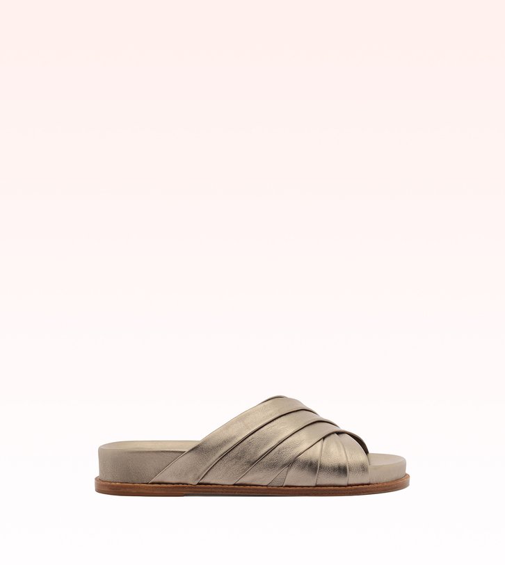 A Rebecca Slide combina conforto e elegância em um design sofisticado. Confeccionada em Nappa Venezia ultramacia, a parte superior apresenta pregas delicadas que criam uma textura sutil e refinada.