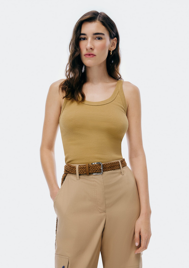 Regata feminina slim em ribana canelada, a peça indispensável em qualquer estação do ano. Com design básico e toque macio, é a opção ideal para compor looks básicos no dia a dia.