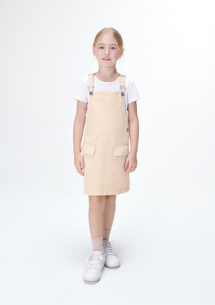 Salopete Curta Bege Hering Infantil Menina Em Sarja