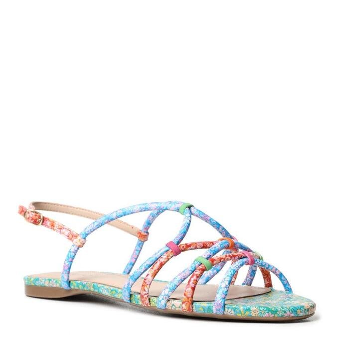 Sandália rasteira colorida em material com estampa floral. O modelo tem cabedal com tiras finas e bombadas sobre os dedos, presas por elos coloridos em nobuck. Duas tiras sobem o peito do pé, unidas no centro, e se conectam a uma tira afivelada simples em torno do calcanhar. De bico redondo, deixa dedos, laterais e parte de trás à mostra.Porque ApostarA rasteira traduz o mood natural e fresco da estação com sua estampa floral trendy e é garantia de looks confortáveis e cheios de estilo. Versátil, vai do escritório ao home office e pode ser combinada a jeans e itens de alfaiataria. Acessórios em materiais naturais e bolsa metalizada são os complementos ideais.