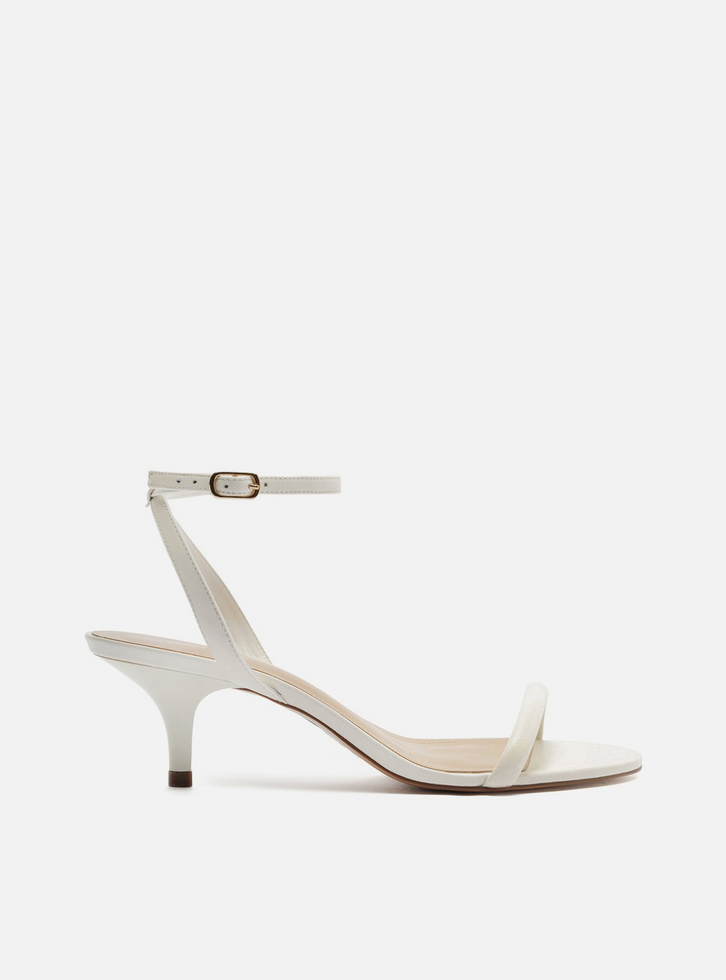 Sandália Branca Couro Salto Baixo Fino Tiras Minimal