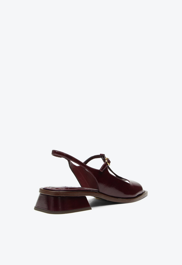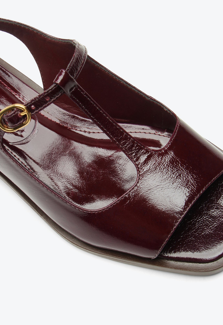 Sandália Constança com salto baixo em couro roxo. Cheia de personalidade, esse modelo possui uma proposta fancy. Confortável, é uma aposta fashion para usar sempre!