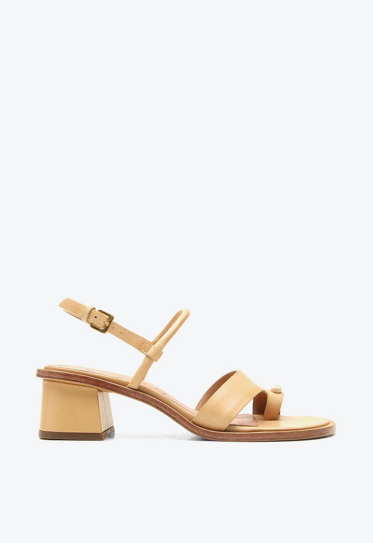 Sandália de dedo Safire bege em couro. Um modelo essencial para quem busca conforto sem abrir mão do estilo. Com salto bloco, possui detalhe metalizado no dedo, adicionando um toque de sofisticação. A sandal perfeita para complementar produções casuais ou mais arrumadas com facilidade. Um clássico que se destaca pela praticidade e elegância.