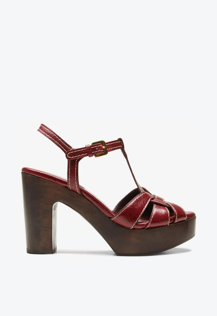 Sandália feminina de salto alto Eloise em couro bordô. Com design robusto e presença marcante, esse modelo traduz a força da estética boho em uma proposta atual e cheia de personalidade. As texturas em couro e o acabamento imponente refletem um novo desejo de moda: autenticidade com atitude. Ideal para compor looks com estilo e presença.