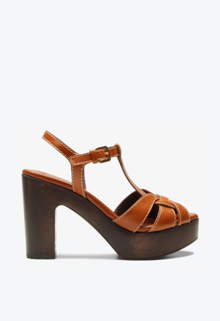 Sandália feminina de salto alto Eloise em couro caramelo. Com design robusto e presença marcante, esse modelo traduz a força da estética boho em uma proposta atual e cheia de personalidade. As texturas em couro e o acabamento imponente refletem um novo desejo de moda: autenticidade com atitude. Ideal para compor looks com estilo e presença.