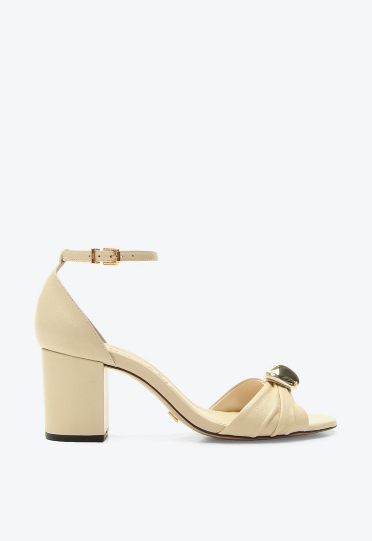 Sandália feminina de salto médio em couro bege. Um modelo que celebra a elegância com leveza e personalidade. O detalhe em couro drapeado, aliado ao toque metalizado de shape orgânico, cria um visual marcante e super feminino — perfeito para presentear ou compor aquele look especial. Com estética delicada e tom neutro, é uma escolha versátil para acompanhar diferentes estilos com charme e sofisticação.
