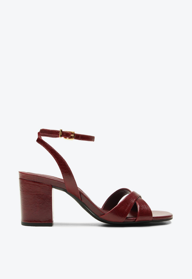 Sandália de salto médio em couro bordô. Com design clean, esse modelo VCZ marrom é uma versão atual de um clássico essencial. Um modelo pensado para unir praticidade e presença, garantindo conforto, versatilidade e aquele toque de brilho que transforma até as produções mais simples.