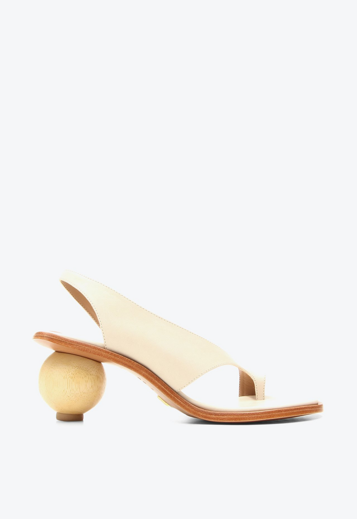 Sandália Julie Bege. O salto escultural em formato de esfera é o grande destaque, unindo design e conforto em um elemento visual impactante. Minimalista e sofisticada, essa sandália é a cara da estação: leve, fashion e super cool para combinar com seus looks de verão!
