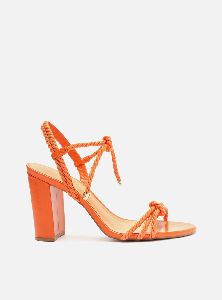 Sandália Laranja Arezzo Cordão Salto Alto Bloco Nó