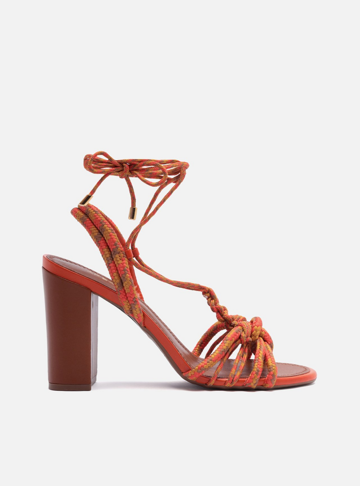 Sandália Laranja Salto Bloco Amarração