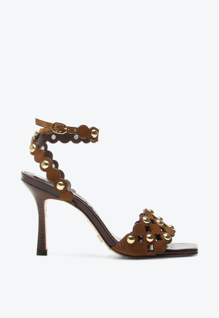 Sandália feminina de salto alto em couro caramelo. Com design imponente e shape quadrado, o modelo Livia traz recortes estratégicos e studs arredondados para destacar o brilho do produto. A construção mistura modernidade e sofisticação, refletindo o mood ousado da temporada. Fashion e versátil, combina perfeitamente com produções noturnas!