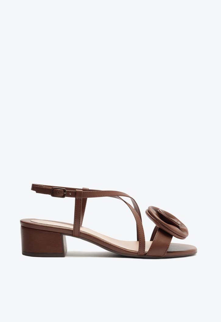 Cada destino com Anacapri é uma nova história a ser vivida. Lançamento Resort de Flores, vamos explorar novos horizontes onde o sol será nosso guia, repletos de cores, leveza e a magia do verão. Sandália Anacapri marrom de salto bloco, com detalhe em flor. O modelo, de material similar ao couro, possui salto em bloco médio e biqueira moderna quadrada. Traz uma tira sobre os dedos, com detalhe delicado na aplicação de adorno do mesmo material da sandália - com design de maxi flor - centralizada na gáspea. Traz duas tirinhas cruzadas sobre o peito de pé, presas pelas laterais e segue contornando o calcanhar, com fecho em fivela lateral. Apresenta palmilha nude, com assinatura Anacapri.