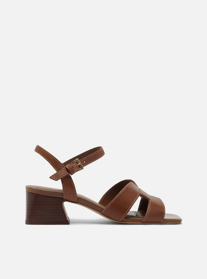 Sandália Marrom Couro Salto Baixo