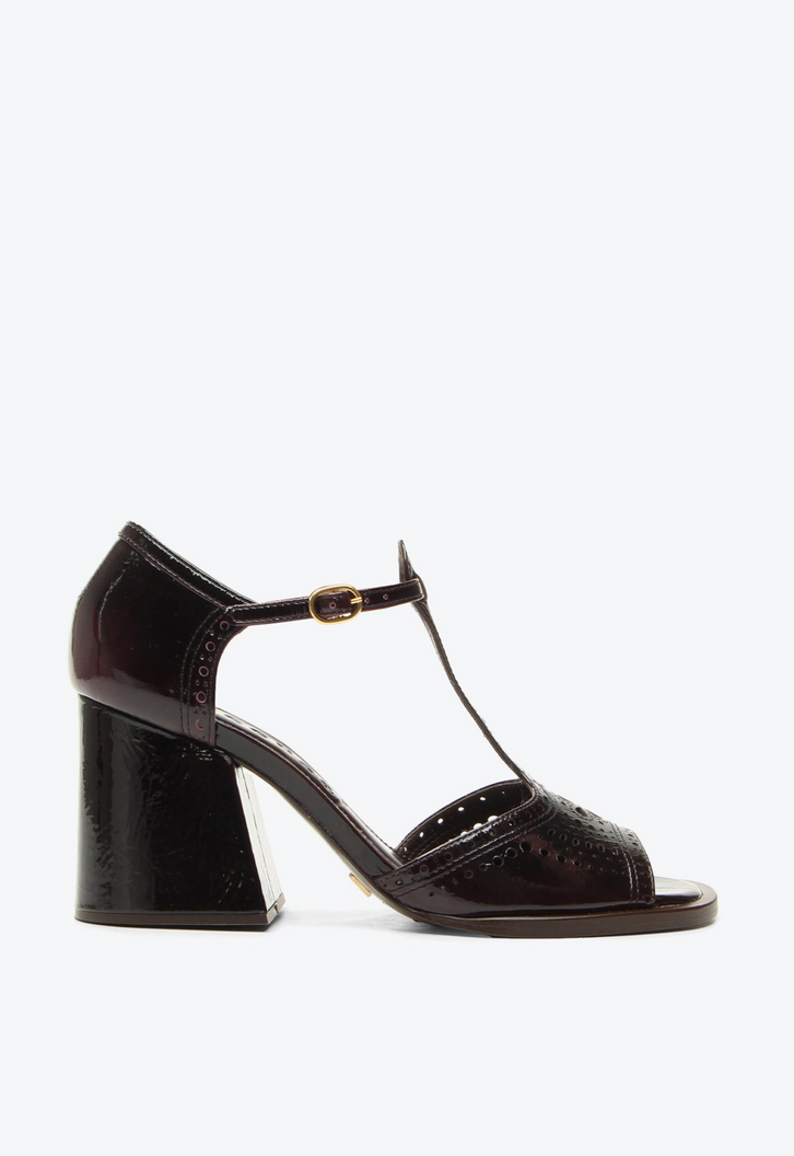 Sandália feminina de salto médio em verniz bordô. Traduz o equilíbrio ideal entre o clássico e o moderno. Com shape feminino e elegante, se destaca pelo acabamento sofisticado. O modelo ganha ainda mais personalidade com os recortes a laser - precisos, autênticos e cheios de feminilidade, traduzindo a inovação nos mínimos detalhes. Uma escolha versátil e cheia de estilo, perfeita para iluminar produções do dia à noite com praticidade e charme.