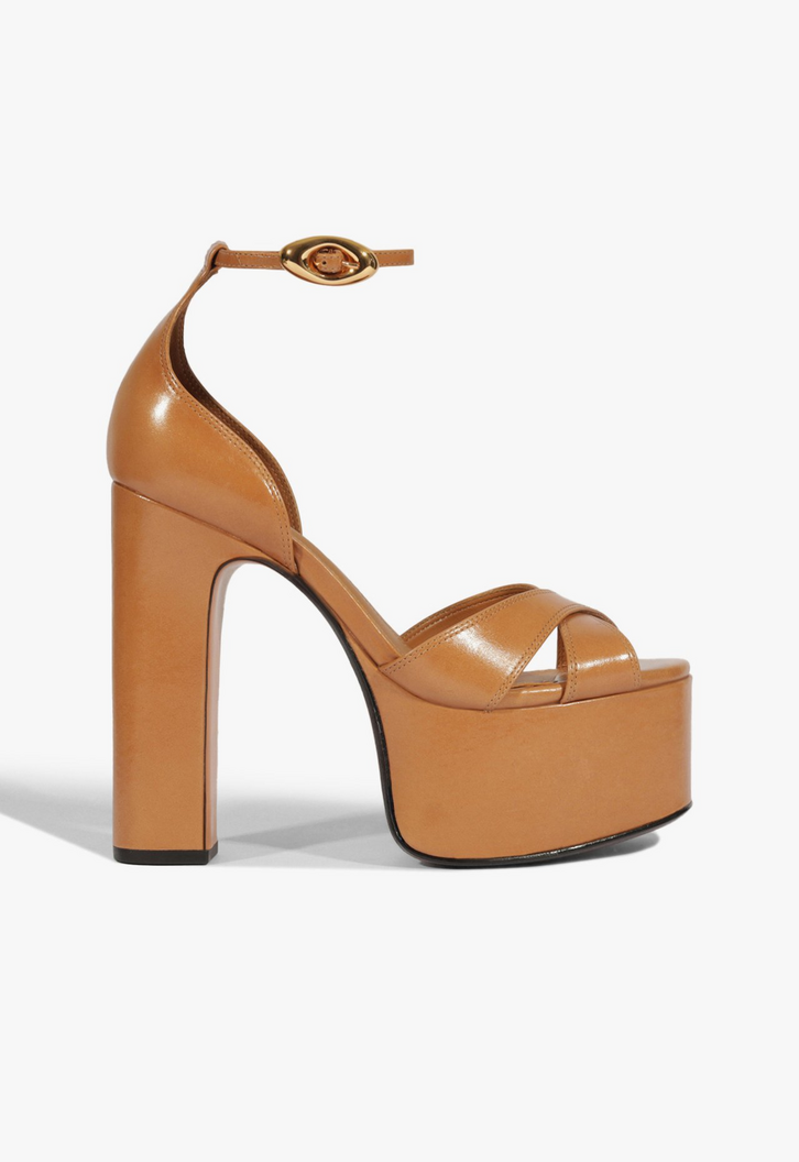 Com design imponente e cheio de estilo, esta sandália meia pata marrom-clara em couro traz o cabedal com tiras finas cruzadas sobre os dedos para um toque de leveza ao visual. O salto bloco alto e a plataforma frontal oferecem altura com conforto, enquanto o fechamento por fivela no tornozelo assegura o ajuste perfeito. Um modelo impactante e cheio de estilo para produções marcantes e sofisticadas!